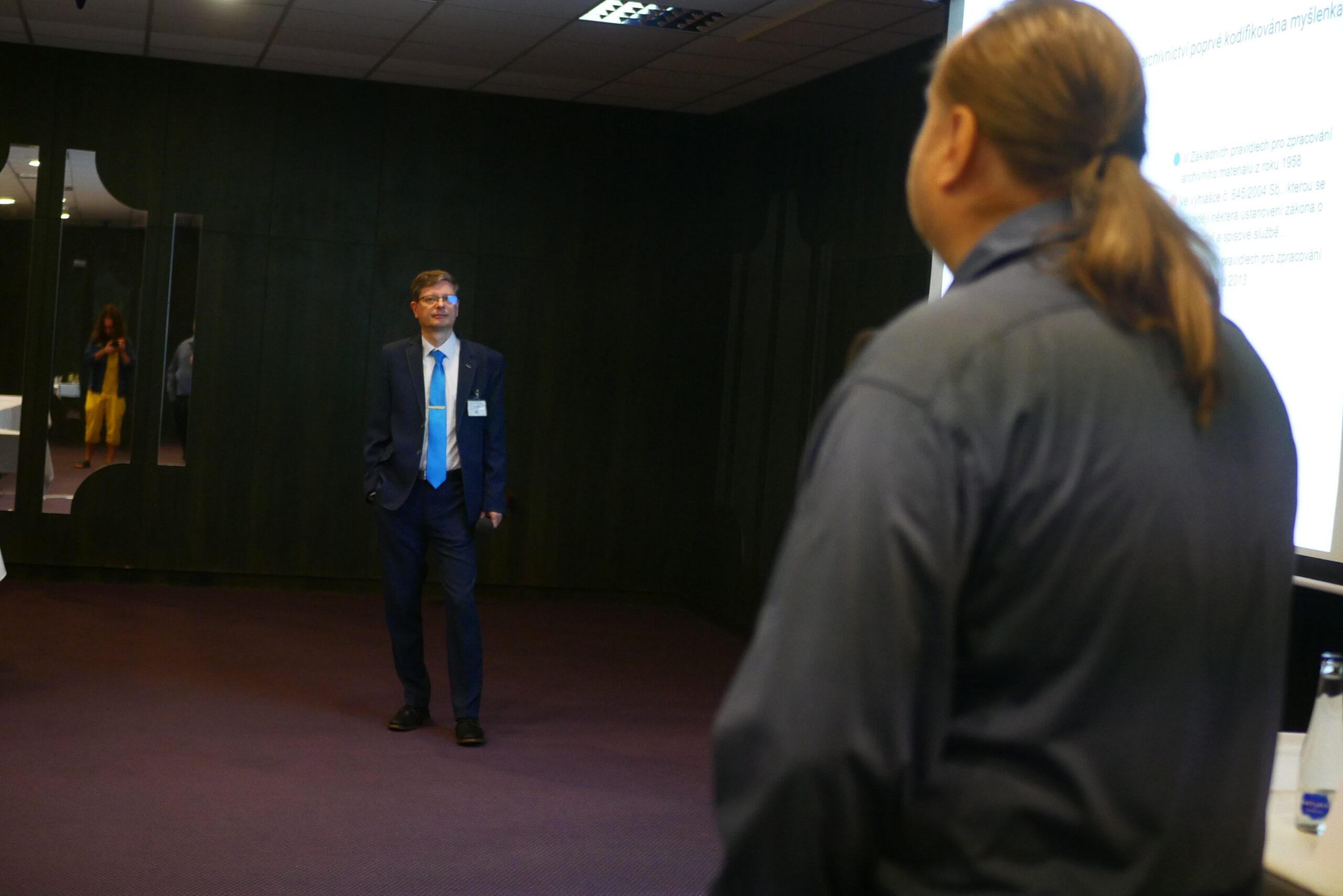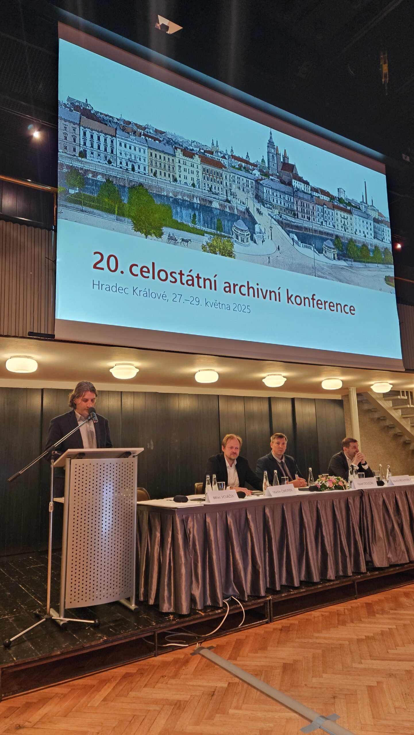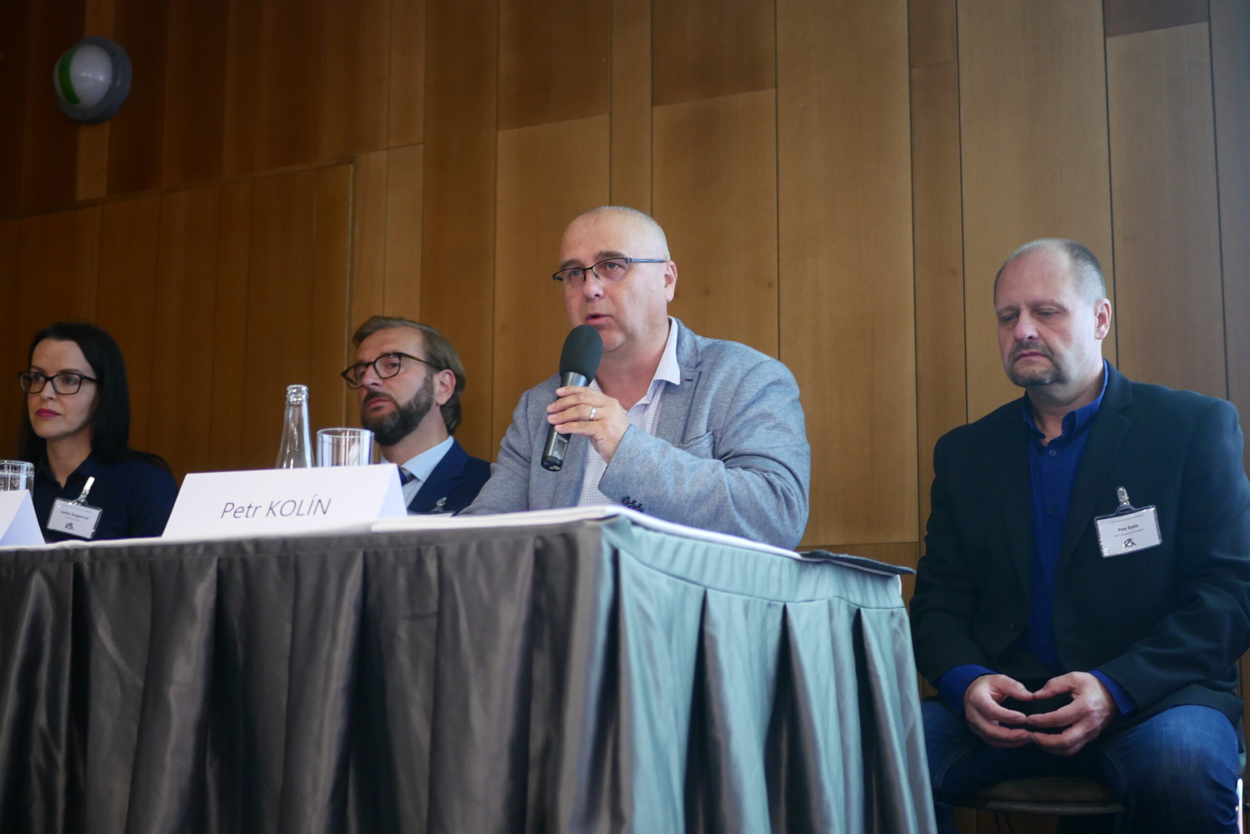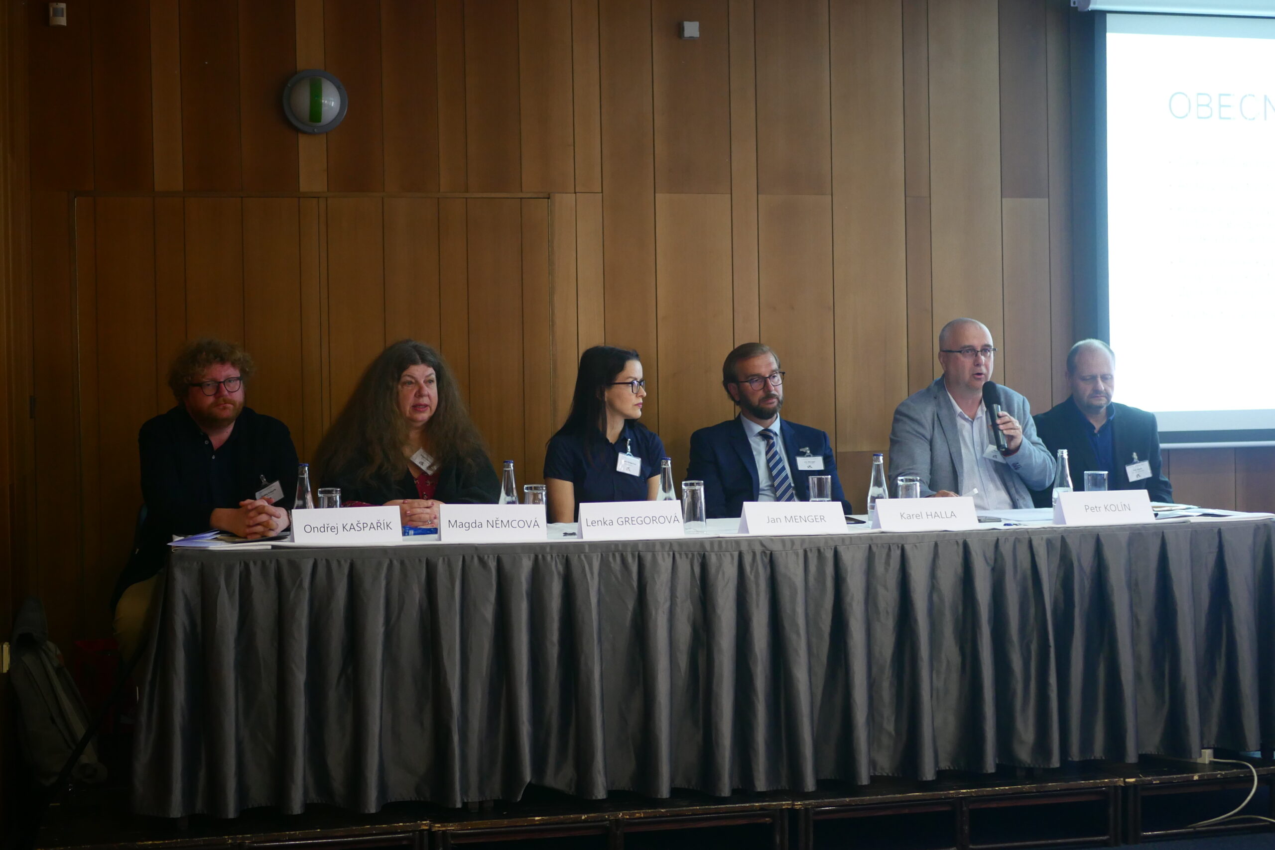 Zleva Martin Stejskal (Archiv Národního bezpečnostního úřadu), Jiří Malý (Národní bezpečnostní úřad), Jakub Stupka (Bezpečnostní informační služba), Petr Kaňák (Úřad pro zahraniční styky a informace), Pavel Navrátil (Bezpečnostní informační služba) a moderátorka této sekce Xenie Penížková (Archiv bezpečnostních složek)