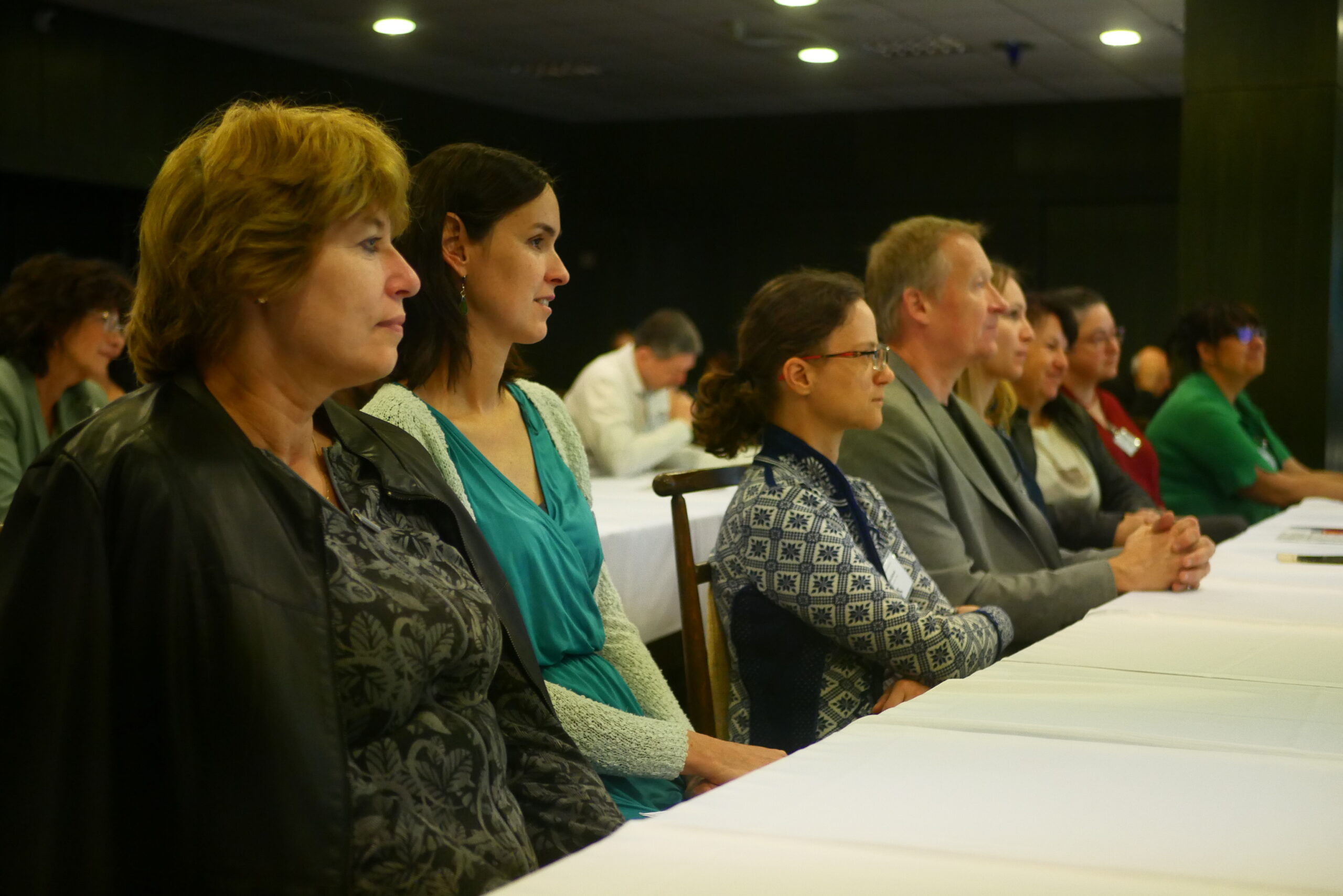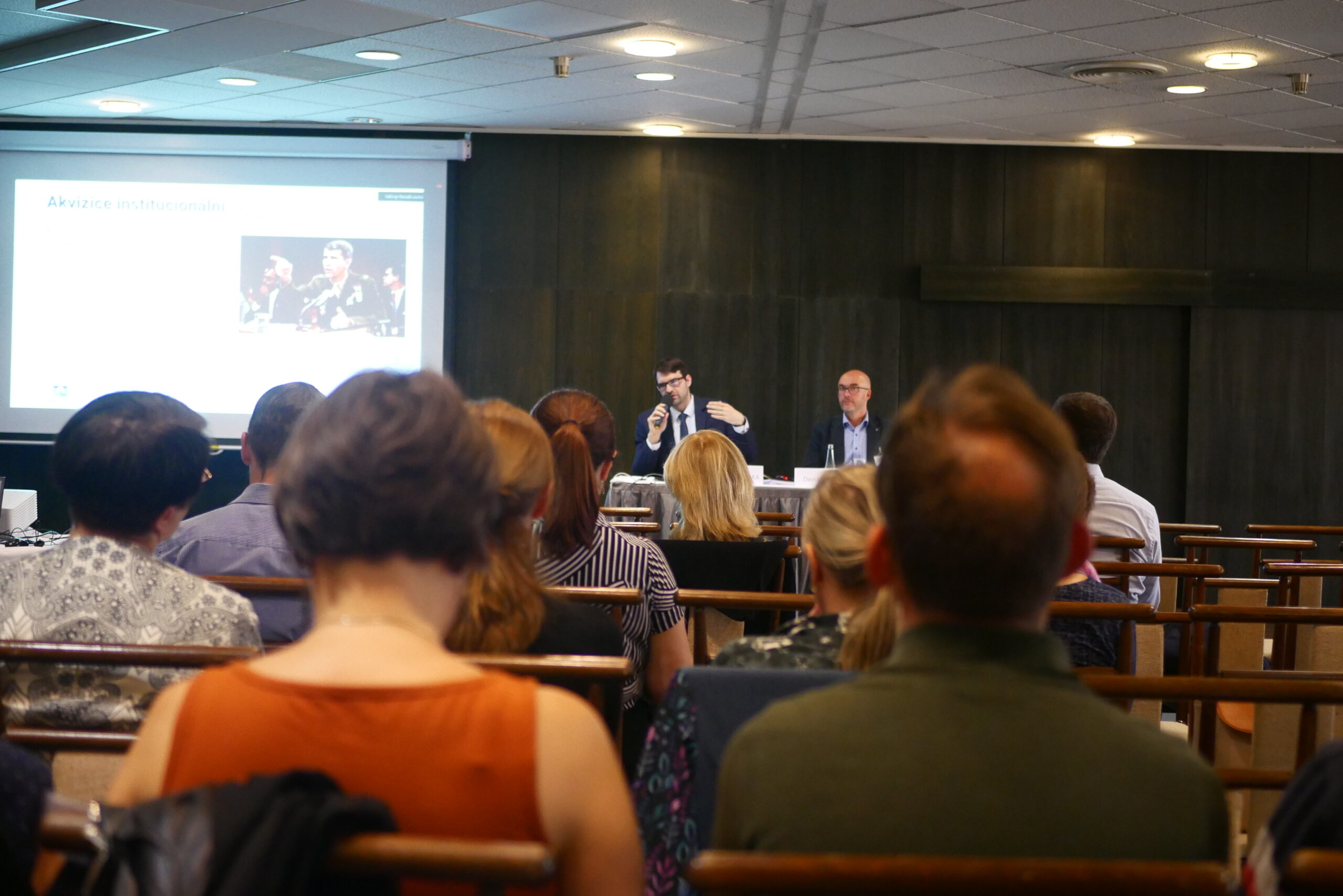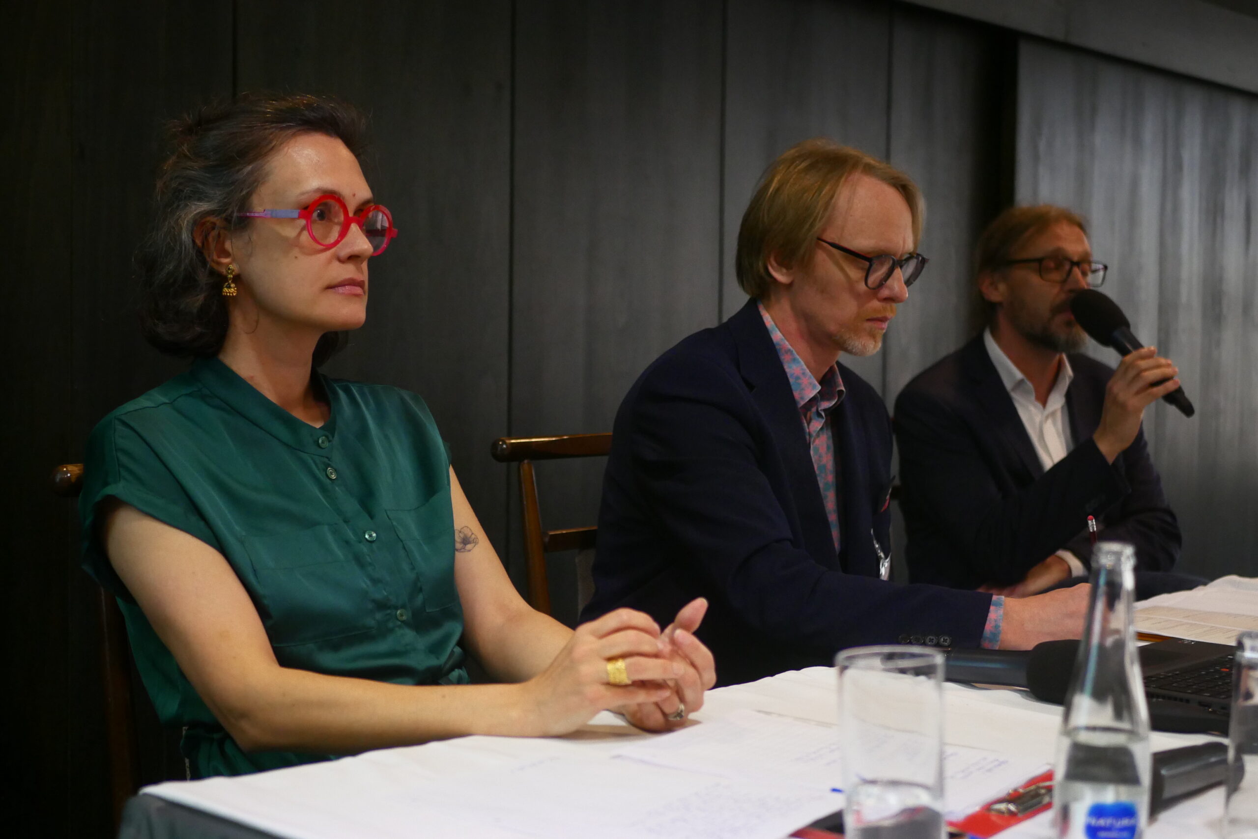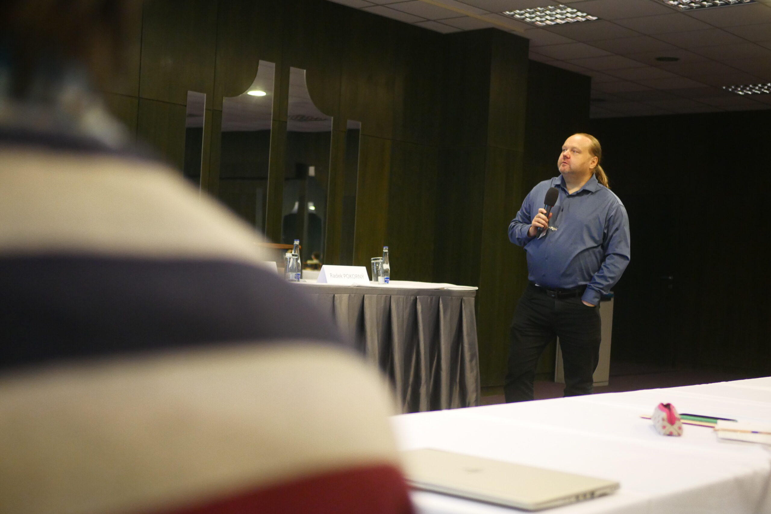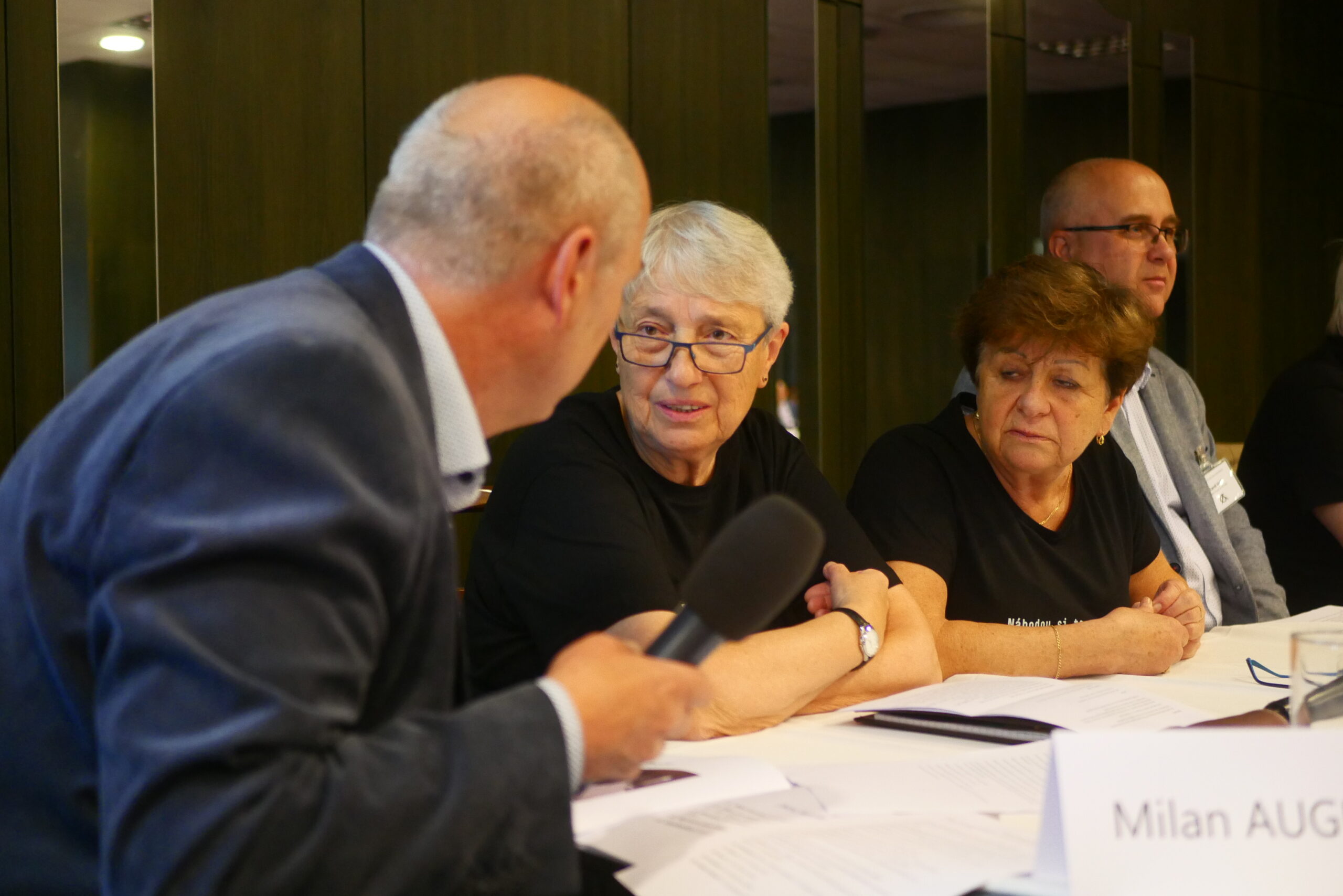 Zleva Martin Stejskal (Archiv Národního bezpečnostního úřadu), Jiří Malý (Národní bezpečnostní úřad), Jakub Stupka (Bezpečnostní informační služba), Petr Kaňák (Úřad pro zahraniční styky a informace), Pavel Navrátil (Bezpečnostní informační služba) a moderátorka této sekce Xenie Penížková (Archiv bezpečnostních složek)